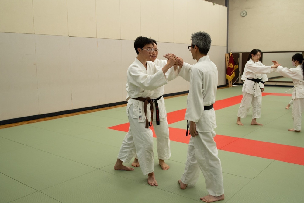 皆さん、こんにちは。合気道部第64代主将の伊藤広太郎です。突然ですが、皆さんは「武道」と聞いてどのようなものを思い浮かべますか?弊部が行う「合気道」とは、柔道や空手のように、こちらから攻撃を仕掛けたりはせず、あくまで相手の攻撃をいなして制する技術です。したがって、男性はもちろん、女性も気後れすることなく挑戦できます。弊部では、女性の部員や留学生の方も在籍しているので、国籍・性別を問わず稽古できます。ぜひ、私たちと一緒に、合気道の神髄に触れてみましょう!